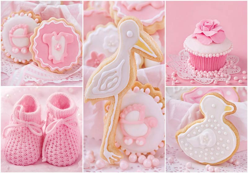 Vlies-Fototapete einer Collage in Rosa, mit allem, was mit der Ankündigung Ihres Babys zu tun hat.