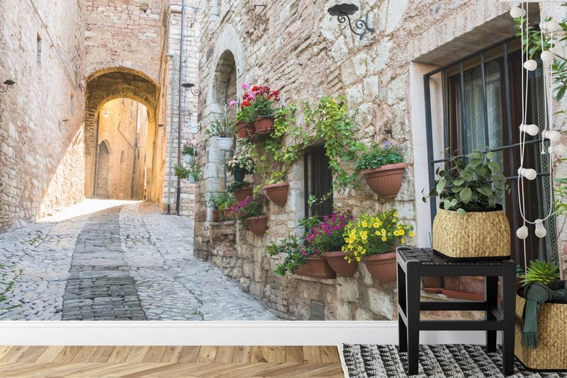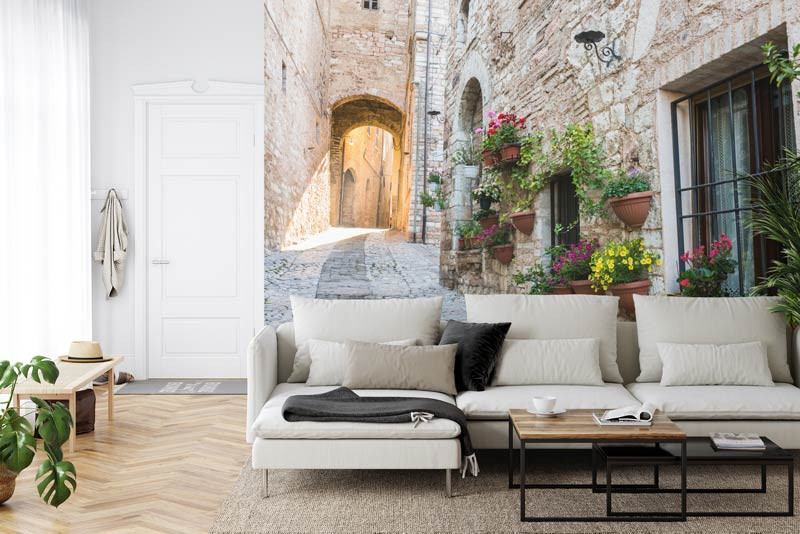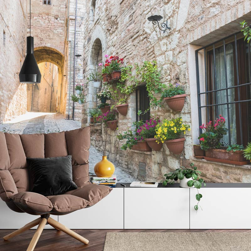Tauchen Sie ein in die charmanten Gassen Italiens mit unserer Fototapete einer italienischen Straße. Bringen Sie die warme Atmosphäre der mediterranen Kultur in Ihr Interieur und schaffen Sie eine Atmosphäre der Romantik und Nostalgie.