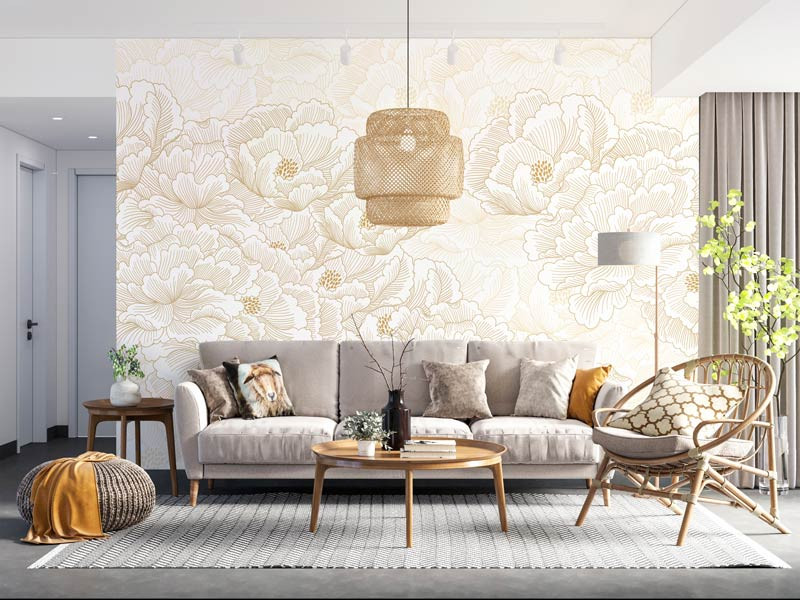 Holen Sie sich mit der Fototapete Japanische Blumen die heitere Schönheit der japanischen Kunst in Ihr Interieur. Dieses elegante Design zeigt zarte Blüten in Beigetönen, inspiriert von der traditionellen japanischen Malerei. Die raffinierten Details und harmonischen Farben schaffen eine beruhigende und stilvolle Atmosphäre.