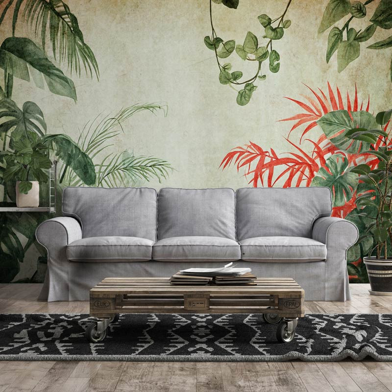 Setzen Sie einen natürlichen und modernen Akzent in Ihrem Interieur mit unserer Fototapete Dschungelpflanzen auf Beton. Dieses Design zeigt exotische Dschungelpflanzen vor einem Betonhintergrund, der eine moderne und erfrischende Atmosphäre schafft. Perfekt für Wohnzimmer, Schlafzimmer oder ein modernes Büro.