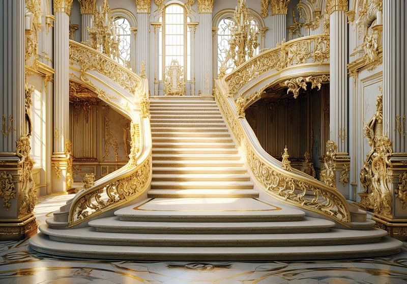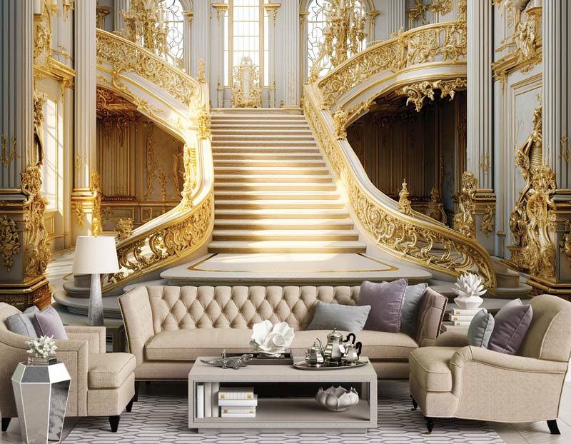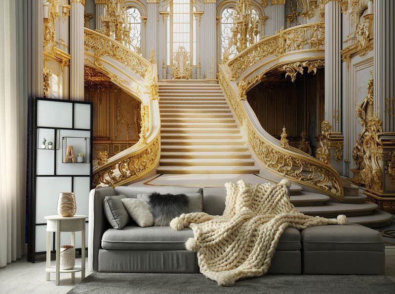 Stellen Sie sich mit unserer Fototapete Imperial Staircase in a Palace 3D die Pracht eines kaiserlichen Palastes vor. Diese prächtige Fototapete zeigt eine imposante Treppe mit goldenen Details, die in jedem Raum ein Gefühl von Erhabenheit und Luxus hervorruft. Perfekt für Liebhaber von königlicher Architektur und historischen Gebäuden. Die Fototapete ist ideal für das Wohnzimmer, das Schlafzimmer oder den Empfangsraum.