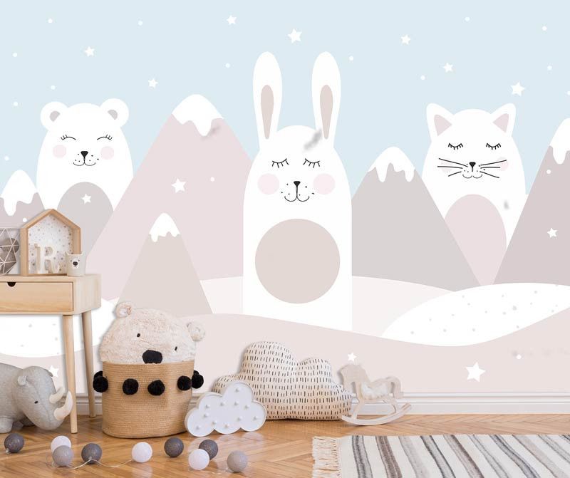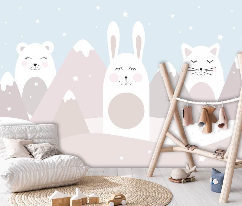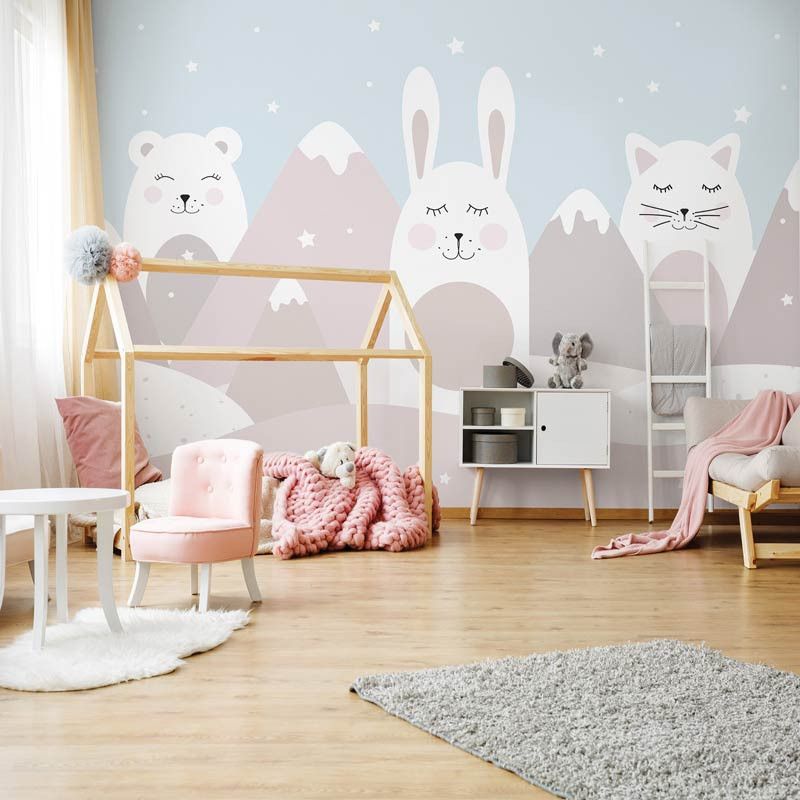 Schaffen Sie eine niedliche und verspielte Atmosphäre im Kinderzimmer mit unserer Fototapete Katze, Hase und Teddybär. Diese schöne Fototapete zeigt ein Trio von süßen Tieren, die zusammen Abenteuer erleben, und schafft ein Gefühl von Wärme und Gemütlichkeit in jeder Ecke des Zimmers. Diese Fototapete ist ideal für Kinder, die niedliche Tiere und fantasievolle Geschichten lieben, denn sie fördert die Kreativität und Vorstellungskraft.