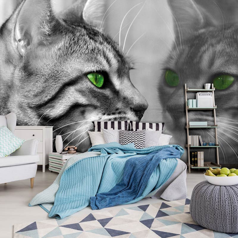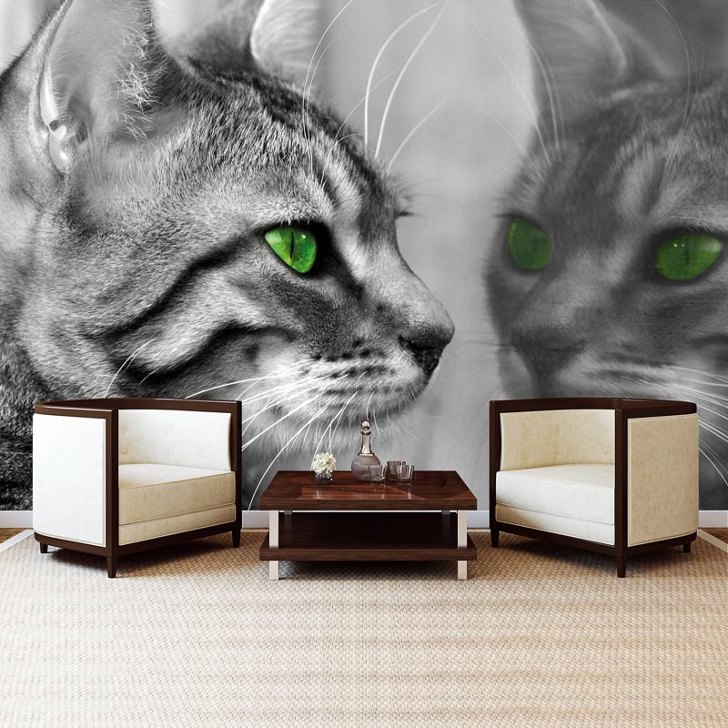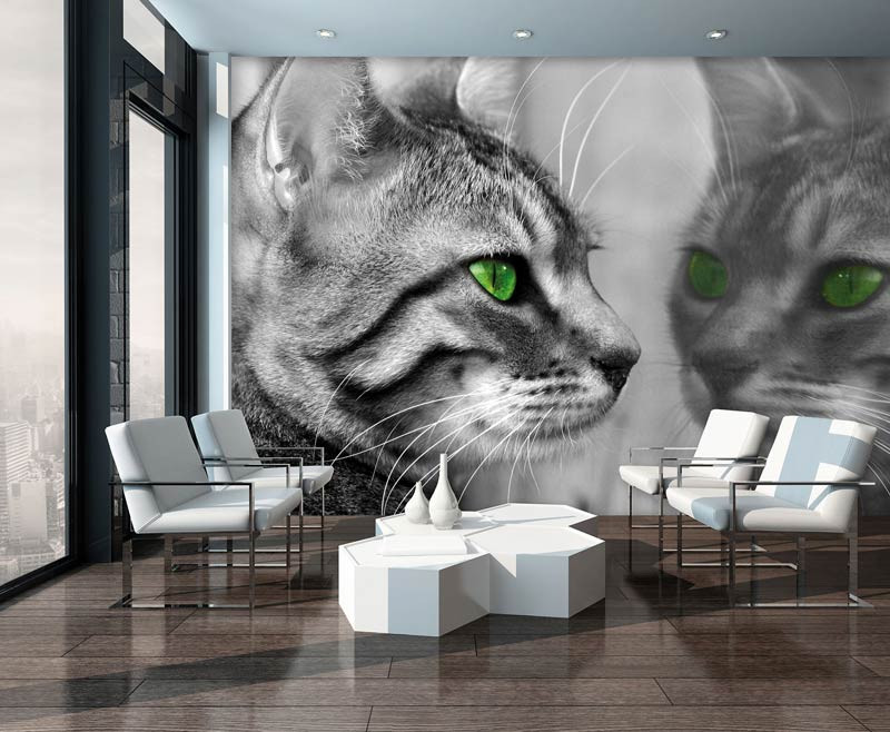 Mit unserer individuellen Fototapete können Sie jede Wand in eine überraschende Szene mit einer Katze vor einem Spiegel verwandeln. Die leuchtenden Farben und der detailreiche Druck sorgen für ein bezauberndes visuelles Erlebnis, während das strapazierfähige Material für lang anhaltende Schönheit sorgt. Lassen Sie sich mit dieser witzigen Fototapete vom verschmitzten Charme der Katzen verzaubern.