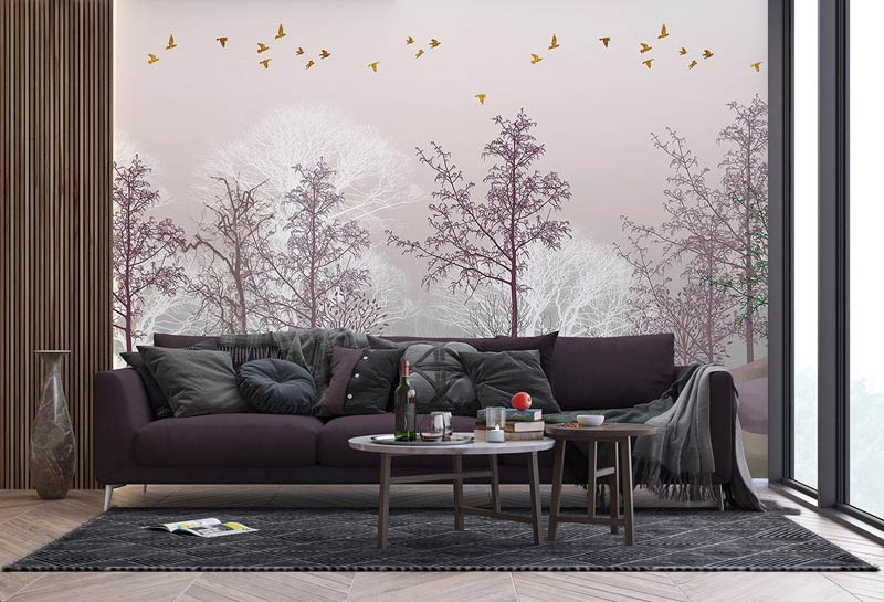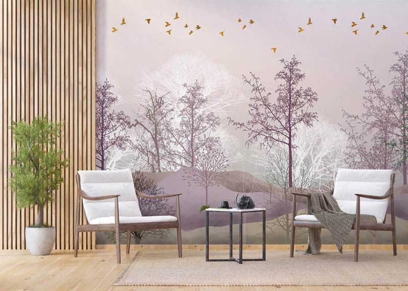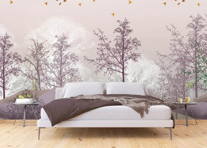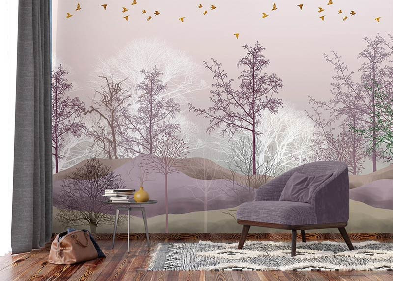 Betreten Sie eine Welt voller Magie mit der Fototapete Artful Magic Forest. Die geheimnisvollen Grün- und Violetttöne verleihen diesem Wald ein märchenhaftes Flair, wobei jeder Baum und jeder Schatten dank der hohen Druckqualität detailliert dargestellt wird.