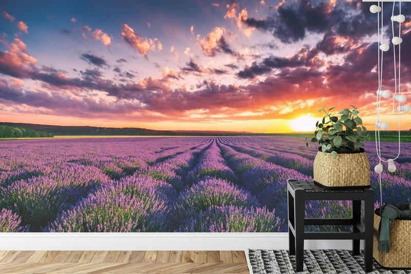 Außerdem können Sie unsere Fototapeten ganz einfach in individuellen Größen bestellen, sodass sie perfekt zu den Abmessungen Ihrer Wand passen. Verleihen Sie Ihrem Interieur eine einzigartige und persönliche Note mit unserer Fototapete eines Lavendelfeldes bei Sonnenuntergang.