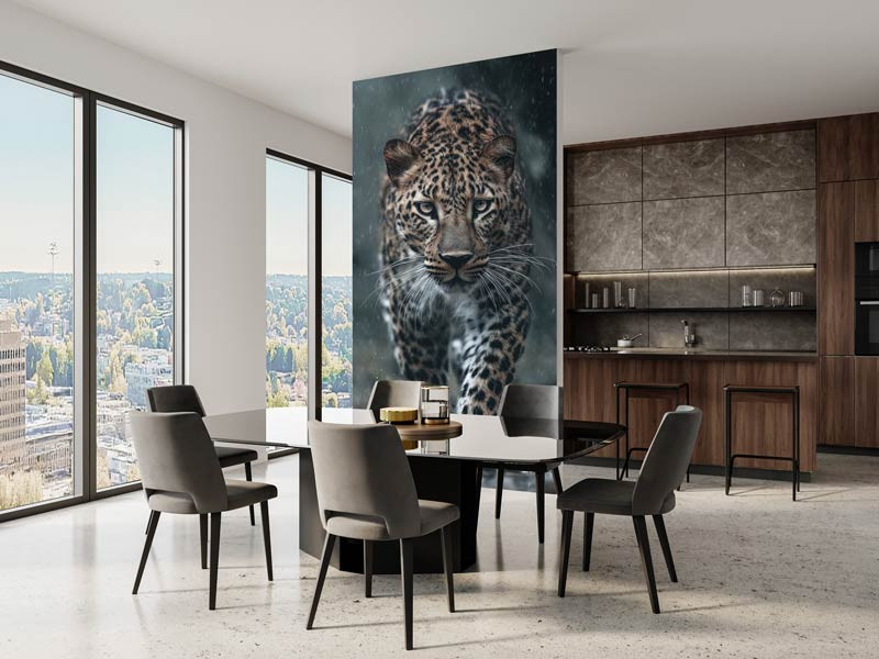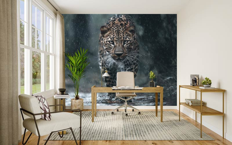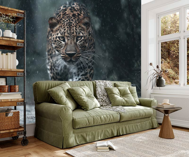 Dank der satten Farben und der naturgetreuen Wiedergabe kommt der Leopard an Ihrer Wand besonders gut zur Geltung. Ob Sie sich für das Wohnzimmer, das Schlafzimmer oder das Büro entscheiden, diese Fototapete bringt eine wilde und geheimnisvolle Atmosphäre in Ihr Interieur. Außerdem kann die Fototapete so angepasst werden, dass sie perfekt an Ihre Wand passt.