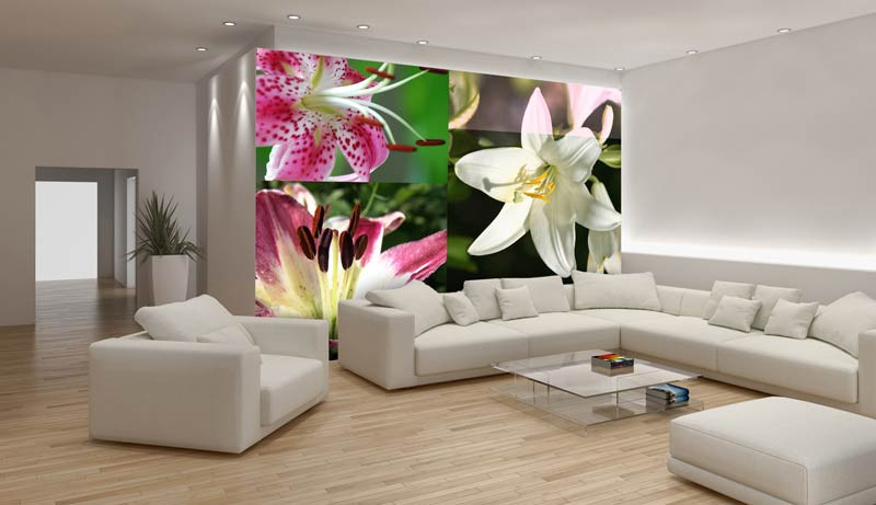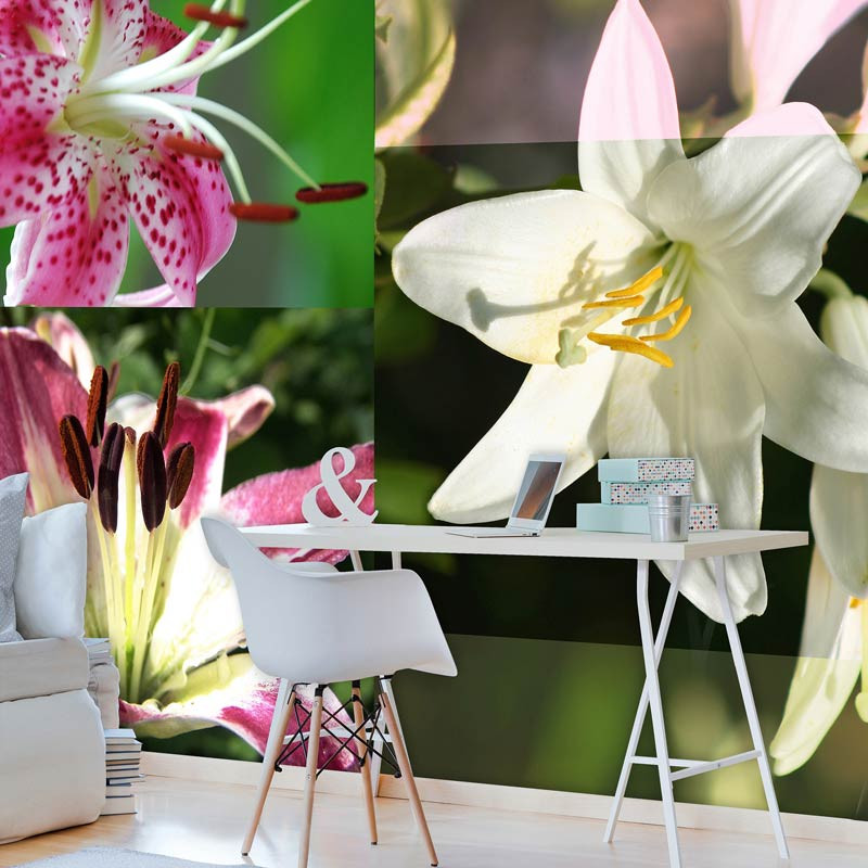 Vlies Fototapete von verschiedenen Lilien. Erhellt das Schlafzimmer, Wohnzimmer, Flur, Büro oder jeden anderen Raum.