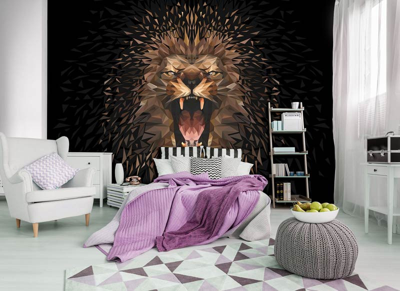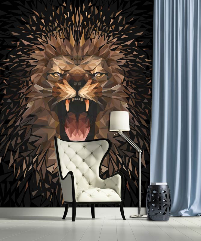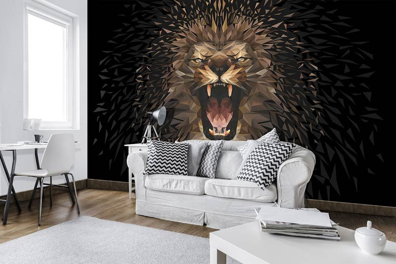 Die Fototapete mit diesem Löwen ist ein Blickfang im: Wohnzimmer, Schlafzimmer, Hobbyraum, Küche, Flur, Büro oder jedem anderen Raum.