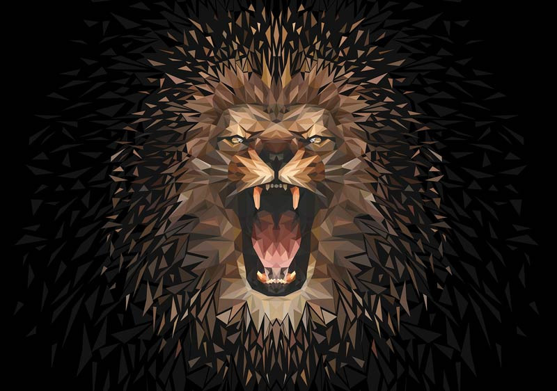 Fototapete eines schönen, brüllenden Löwen, der wie ein Gemälde dargestellt ist.