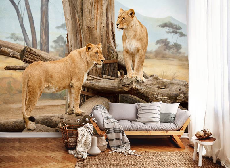 Löwinnen Fototapete ist eine einzigartige Ergänzung für jeden Raum.