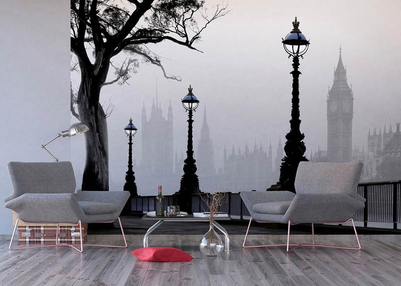 Holen Sie sich den mystischen Charme Londons mit dieser stimmungsvollen Fototapete in Ihr Zuhause. Die ikonische Skyline der Stadt, beleuchtet in gedeckten Farben, schafft eine bezaubernde und urbane Atmosphäre. Diese Tapete ist ideal für moderne Innenräume und schafft einen fesselnden Hintergrund, der den kosmopolitischen Reiz Londons ausstrahlt.