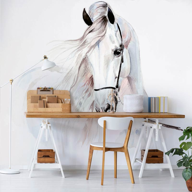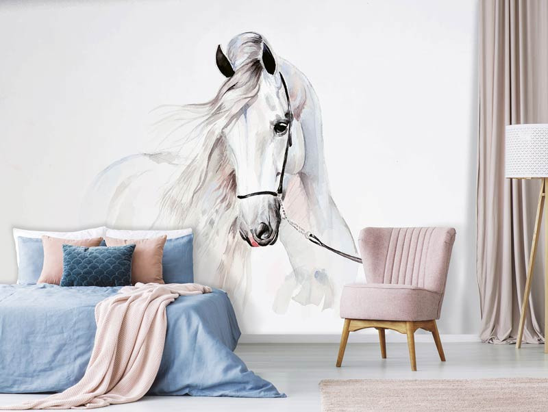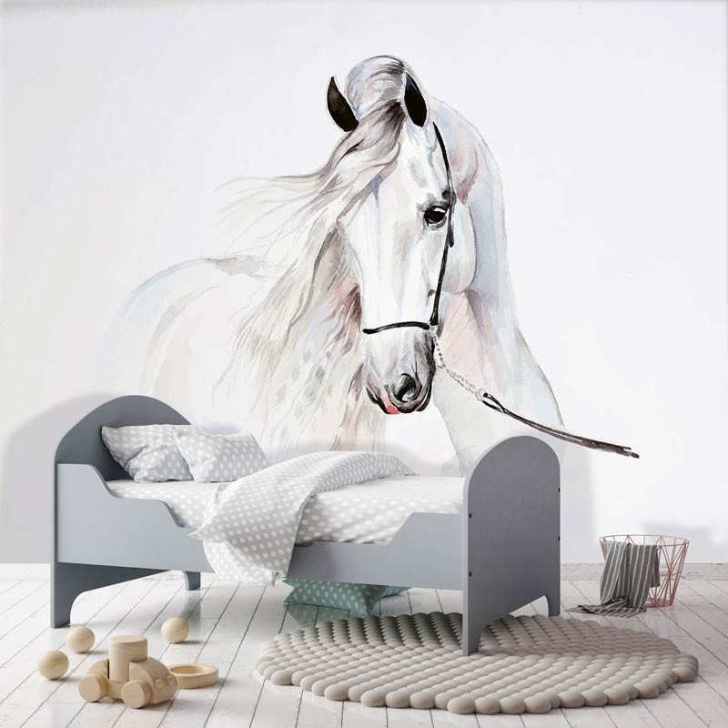 Mit unserer individuellen Fototapete können Sie jede Wand in eine lebendige Szene mit einem majestätischen weißen Pferd verwandeln. Der raffinierte Look und die robusten Materialien sorgen für eine langlebige und luxuriöse Wanddekoration. Lassen Sie sich von der königlichen Pracht eines weißen Pferdes mit dieser eleganten Fototapete verzaubern.