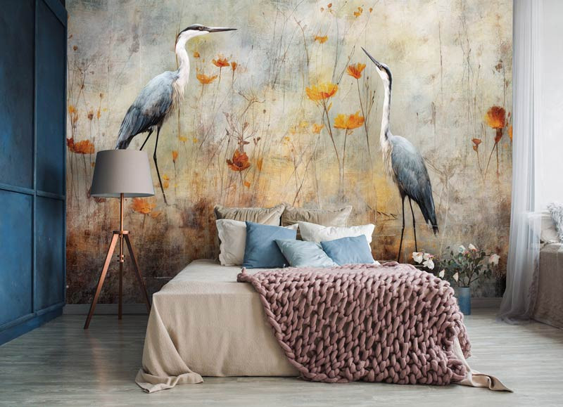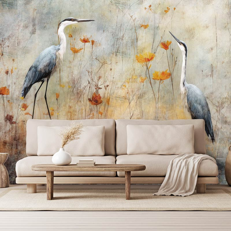 Bringen Sie die Ruhe und Schönheit der Natur in Ihr Zuhause mit unserer Fototapete Malerische Reiher am See. Diese bezaubernde Fototapete zeigt malerische Reiher, die friedlich am Ufer eines Sees stehen, umgeben von üppiger Vegetation. Sie bringt einen Hauch von Gelassenheit und natürlicher Pracht in jeden Raum.