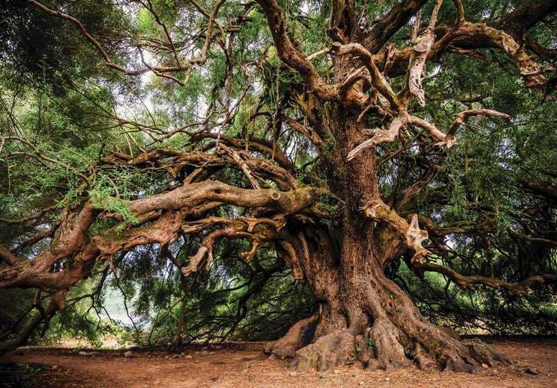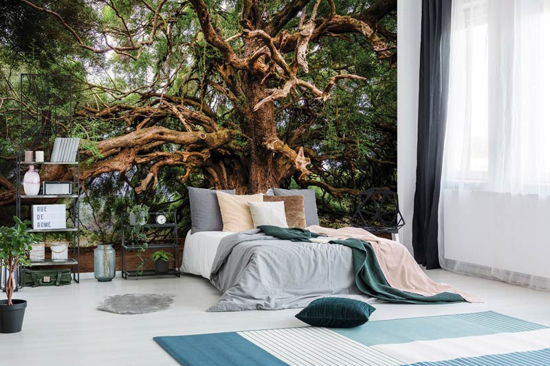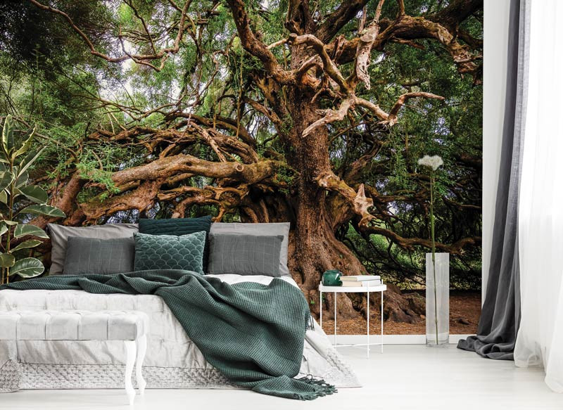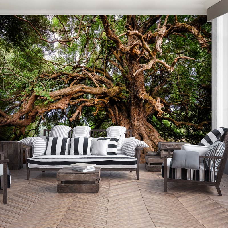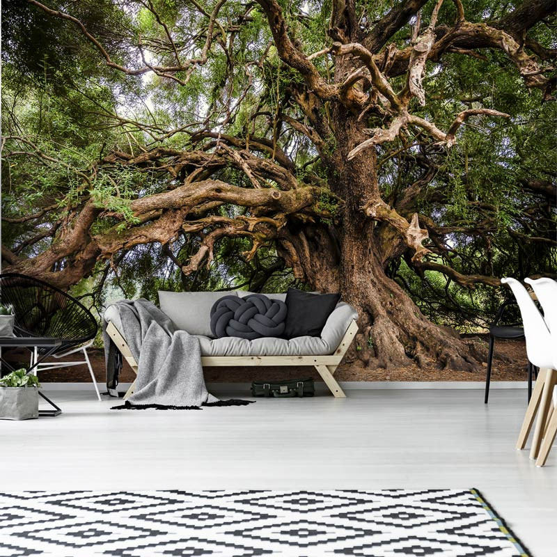 Fototapete von einem schönen alten Baum, der aussieht, als ob er aus einem Märchen stammt.