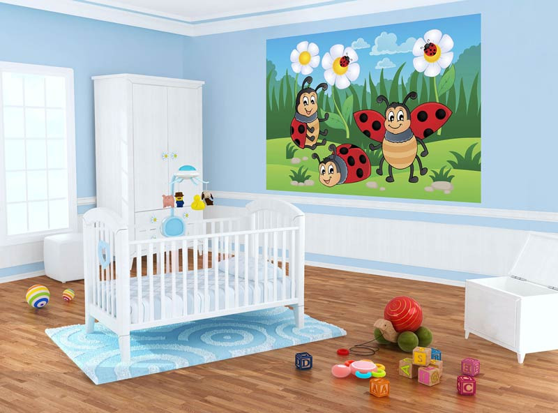 Tapete für die Kleinsten. Die Fototapete mit diesen fröhlichen Marienkäfern verwandelt jedes Kinderzimmer in einen wahren Palast!