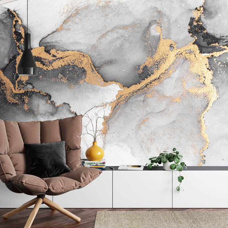 Verändern Sie Ihr Interieur mit unserer individuellen Fototapete Marmor in Grau und Gold. Dieses exklusive Design verbindet die klassische Eleganz von Marmor mit den warmen Tönen von Grau und Gold und verleiht jedem Raum einen luxuriösen Look, der perfekt zu Ihrem persönlichen Stil passt. Entfesseln Sie Ihre Kreativität mit dieser individuellen Fototapete, mit der Sie in Ihrem Zuhause oder Büro ein Statement setzen können.