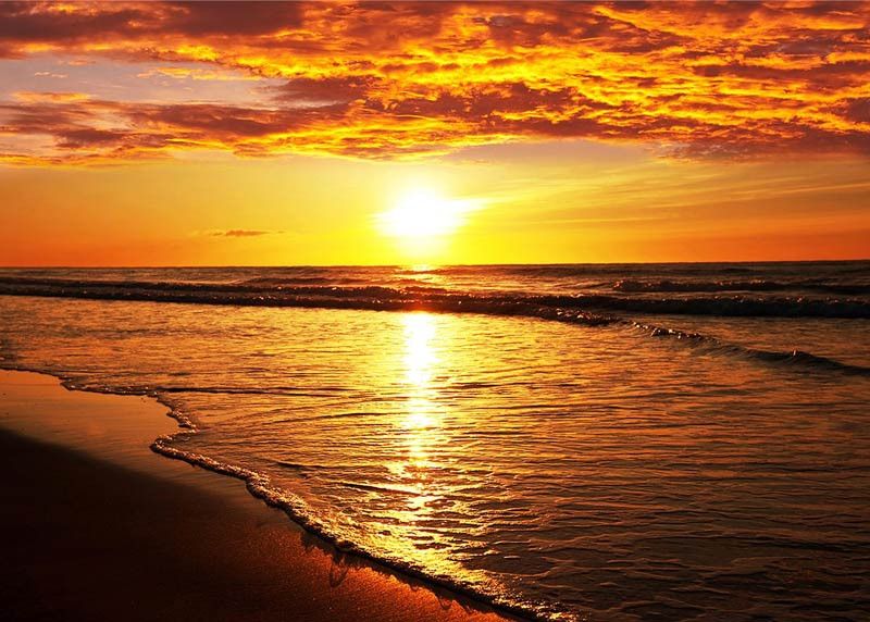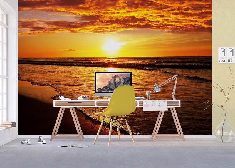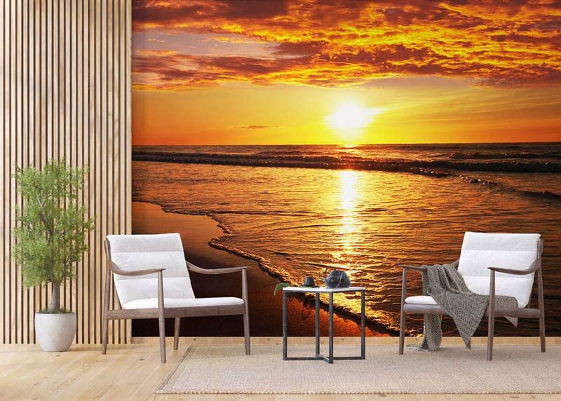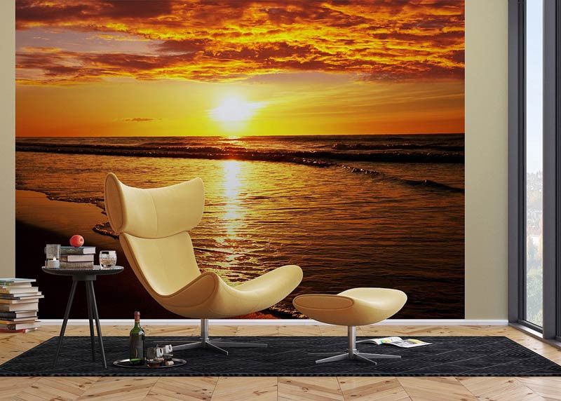 Genießen Sie die beruhigende Schönheit eines Sonnenuntergangs am Meer mit dieser Fototapete. Die warmen Orange- und Rosatöne spiegeln sich im ruhigen Wasser und bringen eine ruhige Atmosphäre in jeden Raum. Ideal für Wohn- oder Schlafräume, in denen ein entspannender Look gewünscht wird.