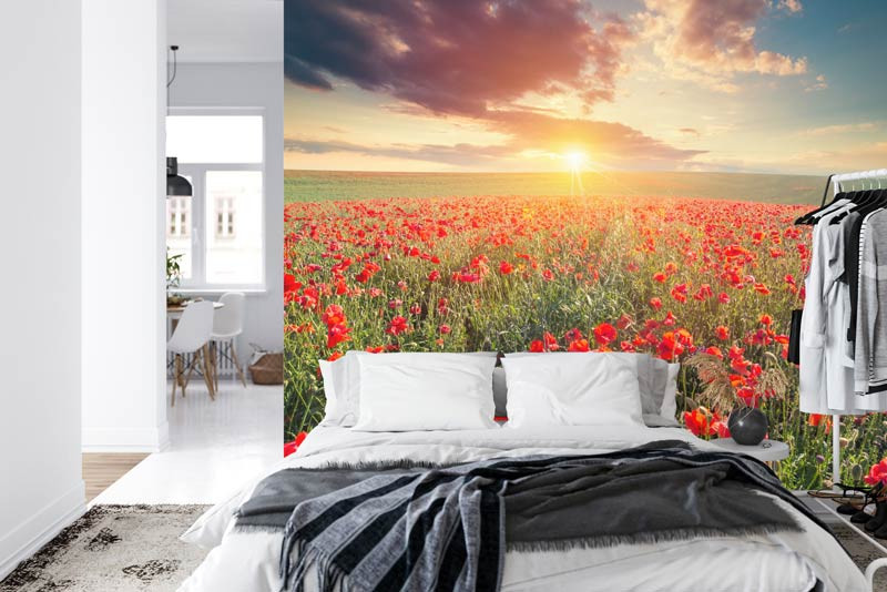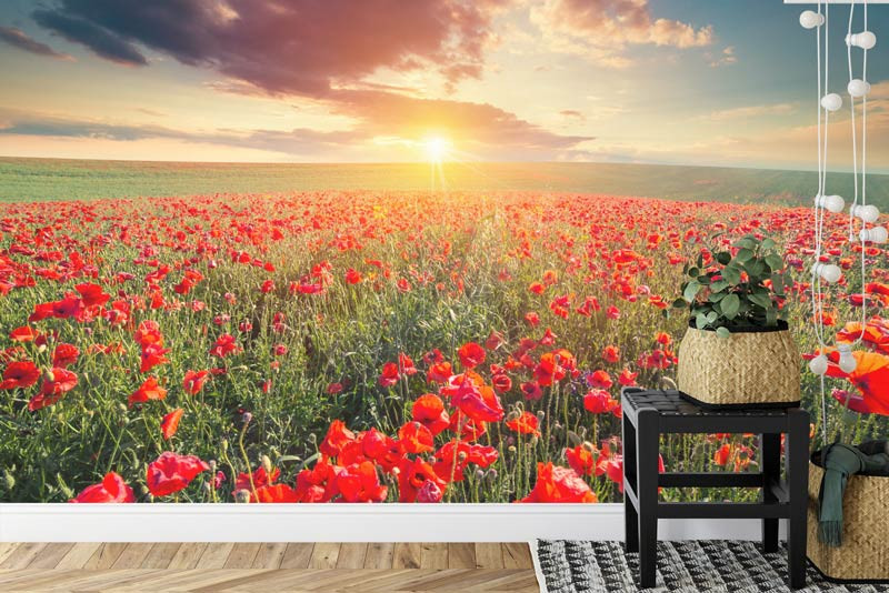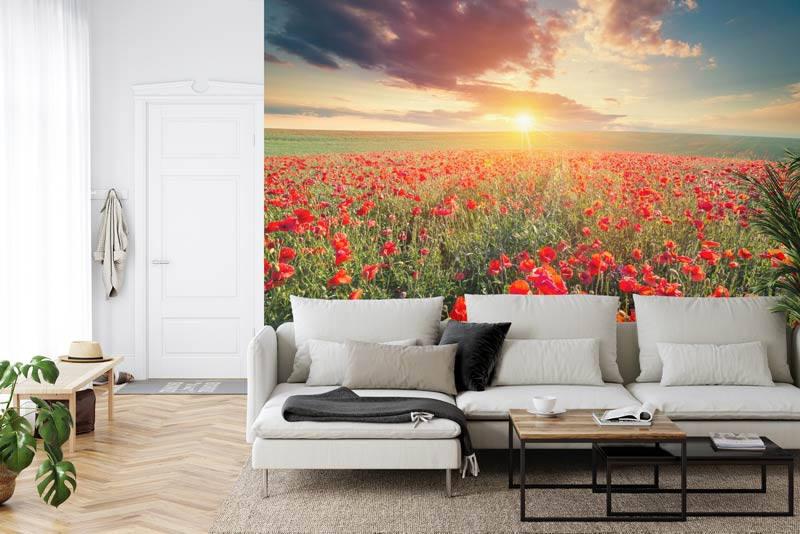 Mit unserer Fototapete können Sie ganz einfach die Maße bestellen, die perfekt in Ihren Raum passen. Lassen Sie die leuchtenden roten Farben der Mohnblumen Ihr Interieur verschönern und einen Hauch von natürlicher Schönheit hinzufügen.