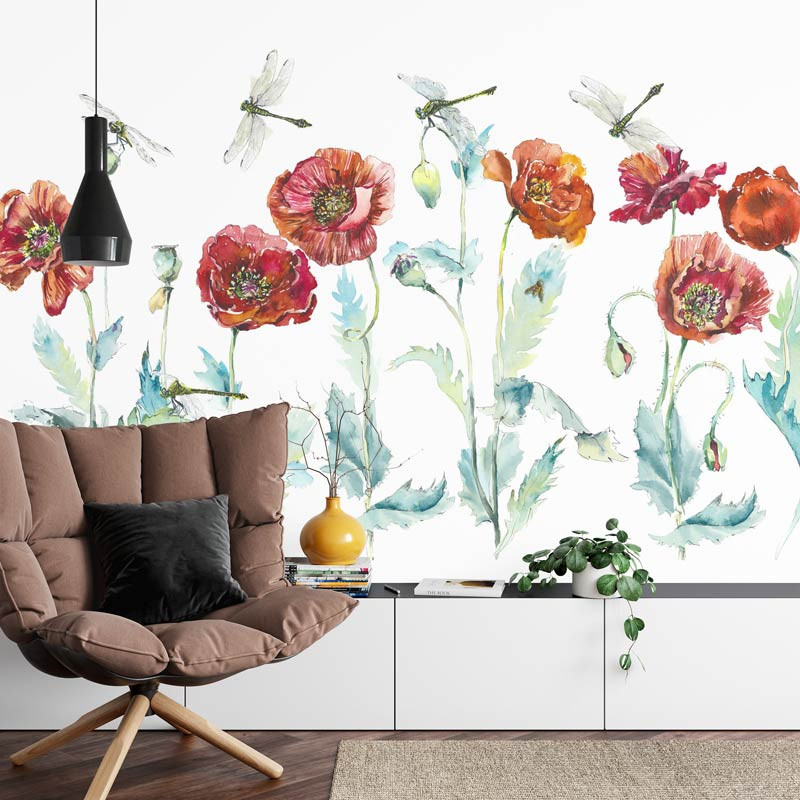 Bringen Sie die lebendige Pracht von Mohnblumen in Ihr Interieur mit unserer Fototapete Mohnblumenbild. Genießen Sie das farbenfrohe Aussehen dieser Blumen und schaffen Sie eine lebendige und energiegeladene Atmosphäre in jedem Raum.