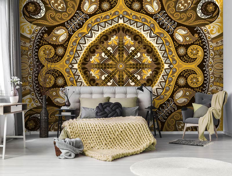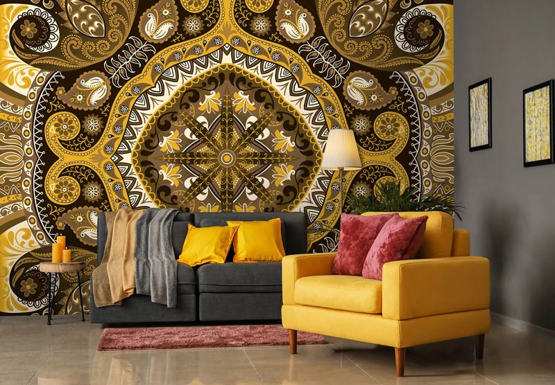 Abstrakte, nicht gewebte Fototapete mit einem schönen Mosaikmuster, in gelb gehalten.