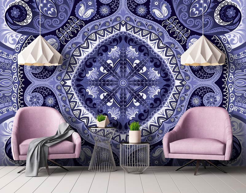 Abstrakte, nicht gewebte Fototapete mit einem schönen Mosaik-Muster, in lila gehalten.