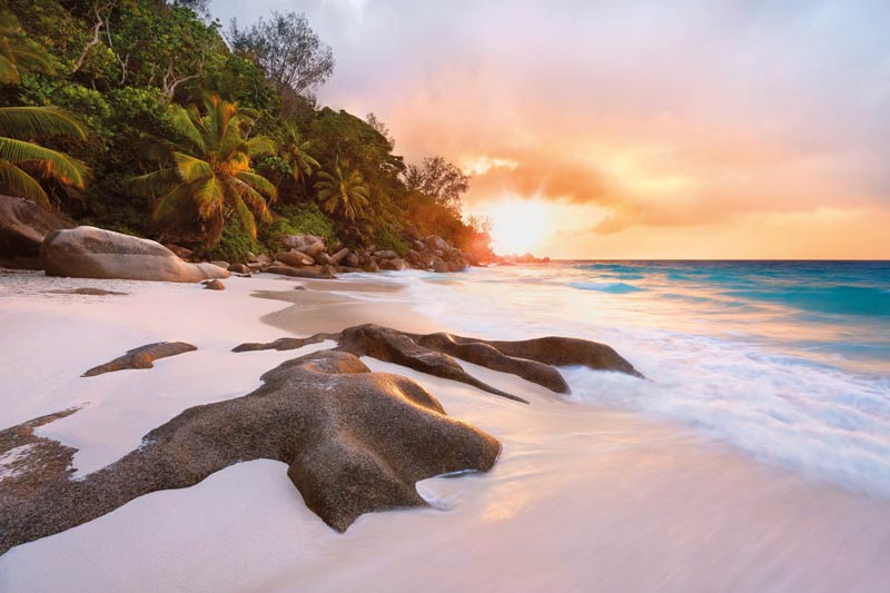 Eine einsame Lagune, ein verträumter weißer Sandstrand und die sanfte Brandung bei Sonnenaufgang. Hier können Sie entspannen und den Moment genießen.