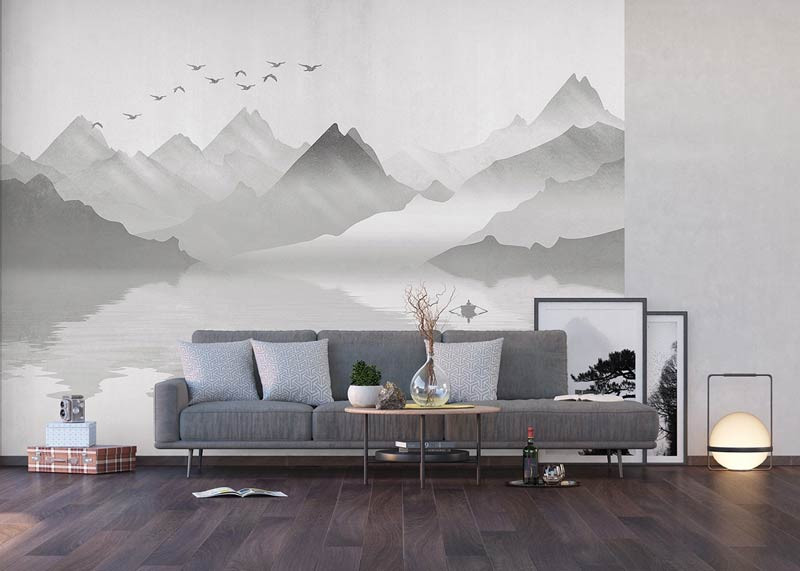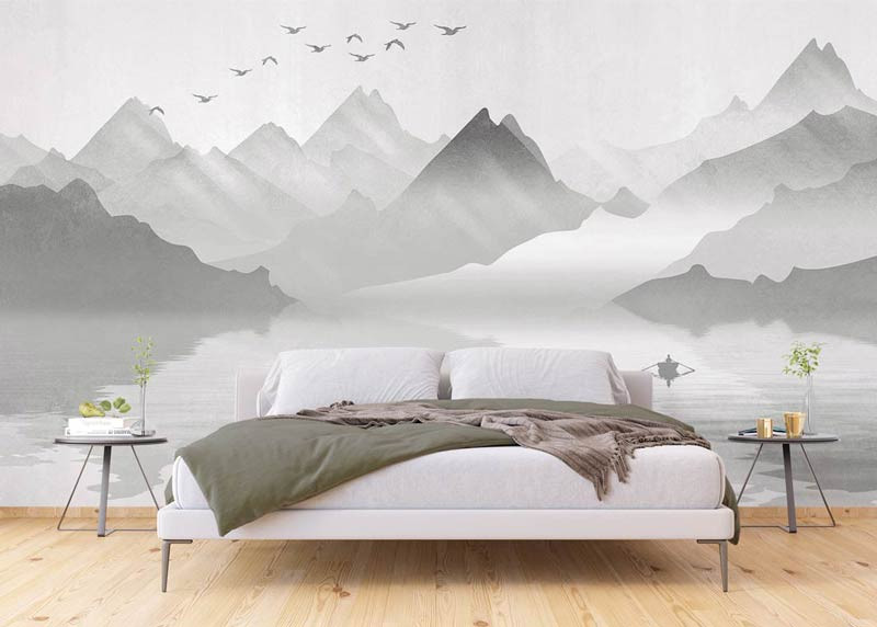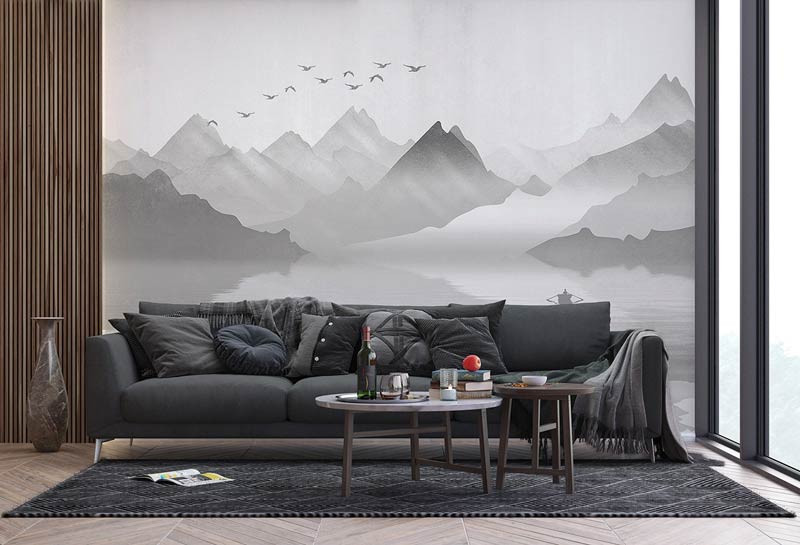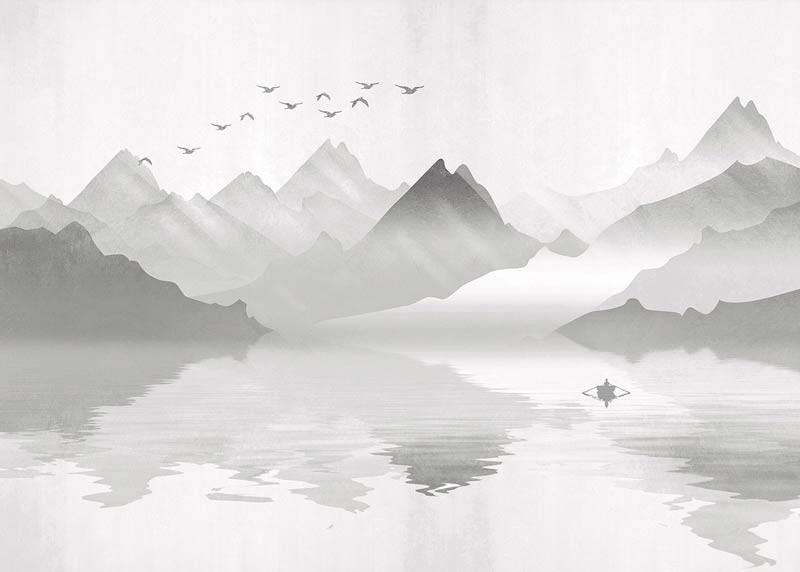 Genießen Sie atemberaubende Ausblicke auf neblige Berge mit dieser natürlich wirkenden Fototapete. Die sanften Blau- und Grautöne schaffen eine beruhigende Atmosphäre, ideal für Entspannungsbereiche. Diese leicht anpassbare Fototapete erweckt die Natur in Ihrem Interieur zum Leben.