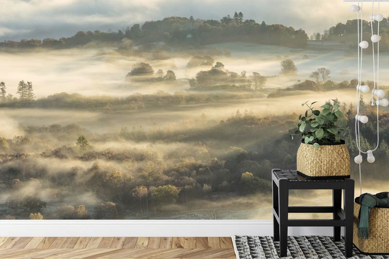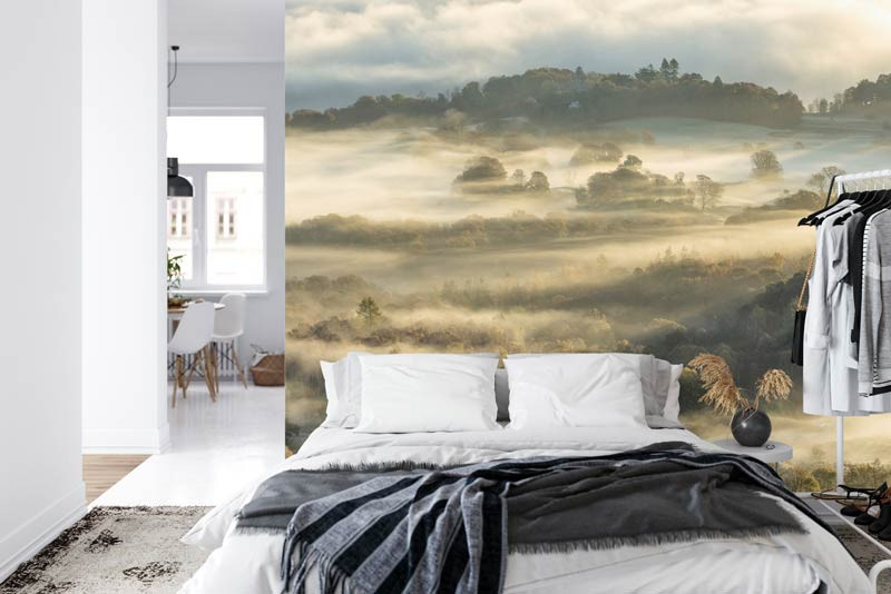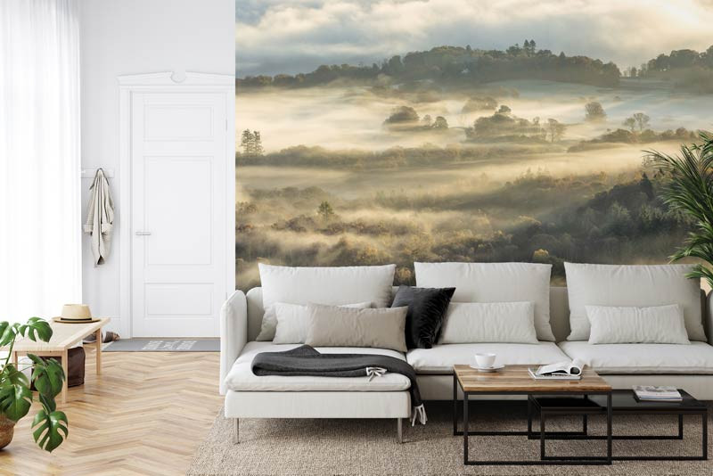 Entdecken Sie die beruhigende Schönheit einer nebligen Waldlandschaft mit unserer individuellen Fototapete Foggy Forest Landscape. Dieses bezaubernde Design bringt die geheimnisvolle Atmosphäre eines nebelverhangenen Waldes direkt in Ihr Interieur und verleiht jedem Raum einen Hauch von natürlicher Gelassenheit.