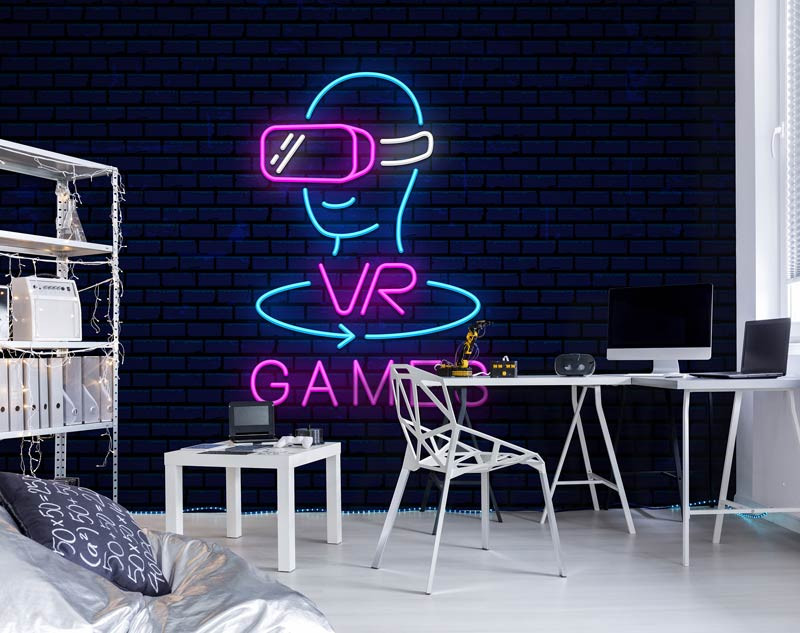 Mit der Fototapete Neon VR Games erhalten Sie ein Design, das Gaming und Stil mühelos miteinander verbindet. Bestellen Sie die individuelle Fototapete, die perfekt in Ihr Gaming-Zimmer passt, und genießen Sie eine inspirierende Umgebung, die Sie jeden Tag zum Spielen und Erleben einlädt.