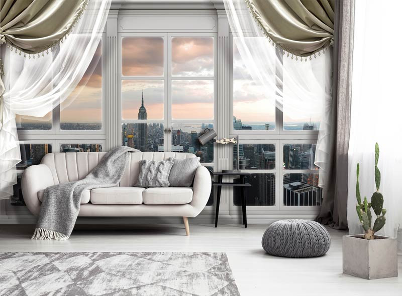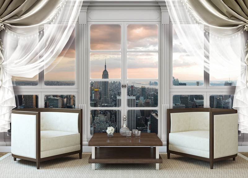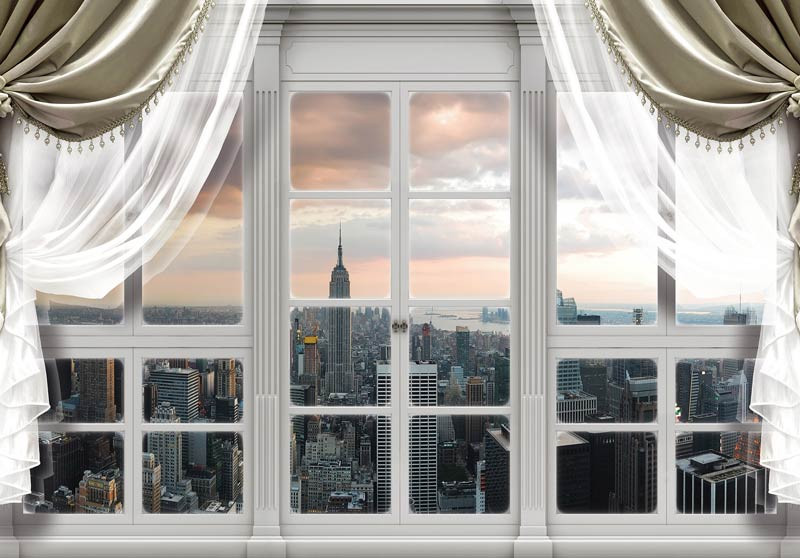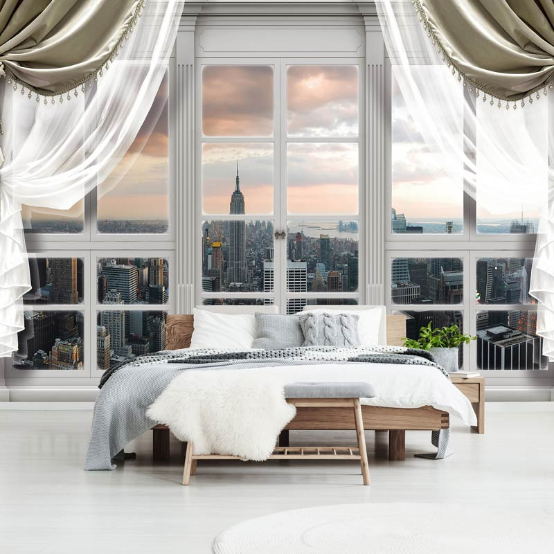 3D Vliestapete der Fensteransicht der amerikanischen Metropole: New York.