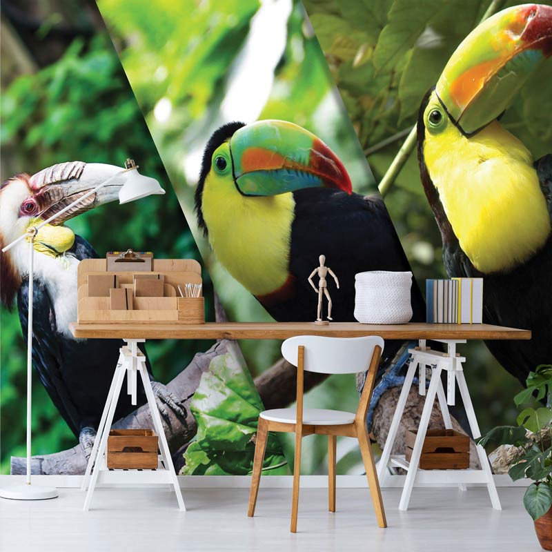 Bringen Sie die exotische Pracht der Tropen in Ihre Innenräume mit unserer Fototapete Tukane. Diese farbenfrohe Fototapete zeigt majestätische Tukane, die in jedem Raum eine Atmosphäre von Abenteuer und natürlicher Schönheit schaffen.