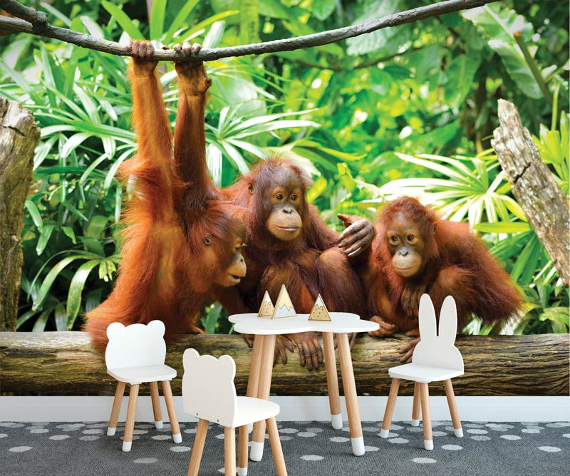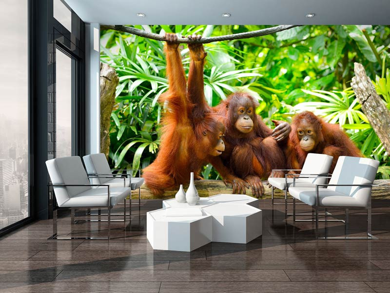 Vlies Fototapete von 3, schönen Orang-Utans im Dschungel.