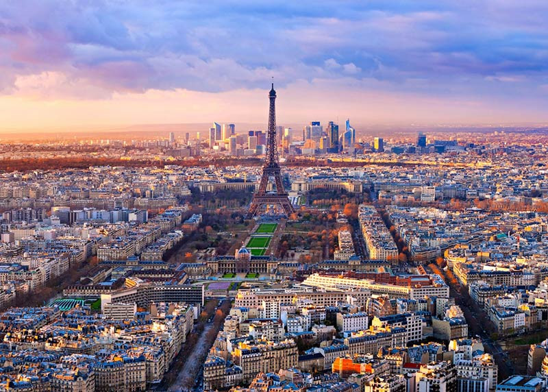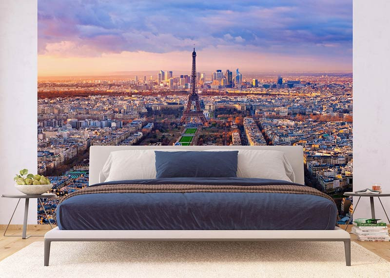 Erleben Sie den romantischen Charme von Paris bei Sonnenuntergang mit dieser schönen Fototapete. Die warmen orange- und rosafarbenen Töne des Sonnenuntergangs verleihen der Stadt eine verträumte, bezaubernde Atmosphäre.