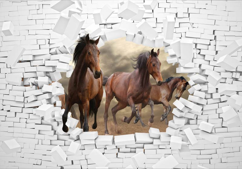 Fototapete Pferde durch die Wand 3D