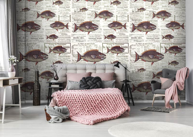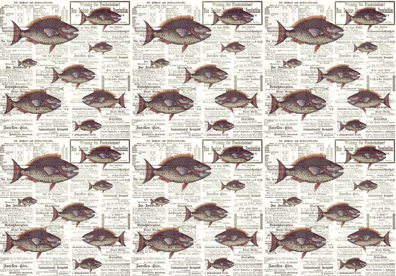 Fototapete von Piranhas auf Zeitungspapier.