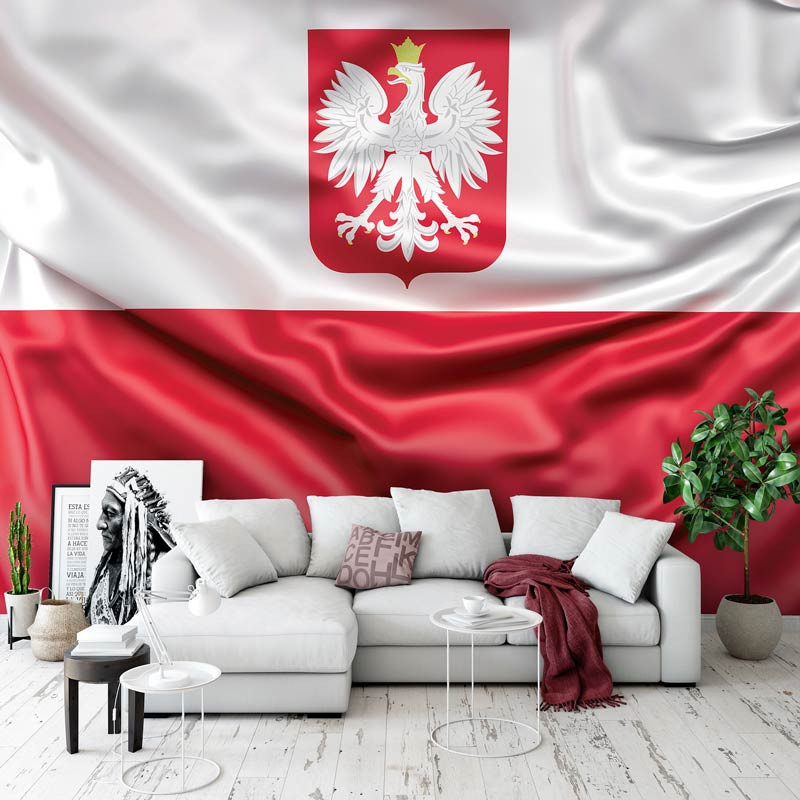 Polnische Flagge Fototapete ist ein echter Blickfang im: Wohnzimmer, Schlafzimmer, Hobbyraum, Küche, Flur, Büro oder jedem anderen Raum.