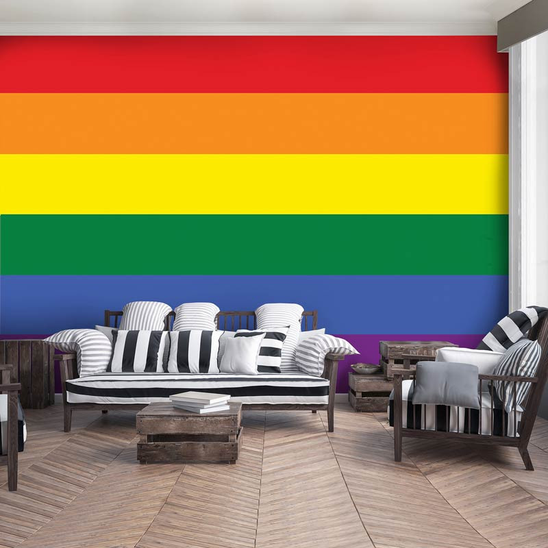 Die Regenbogenflagge Fototapete ist ein echter Blickfang im: Schlafzimmer, Wohnzimmer, Jugendzimmer, Kinderzimmer, Küche, Flur, Büro oder jedem anderen Raum.