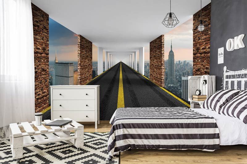 Vlies Fototapete von langen Brücke in New York. Gibt einen schönen 3D-Effekt in der: Schlafzimmer, Wohnzimmer, Flur, Büro oder jeden anderen Raum.