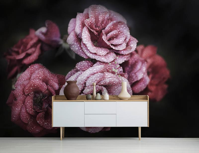 Die Blumen Fototapete ist ein echter Blickfang und schafft eine romantische Atmosphäre in jedem anderen Raum.