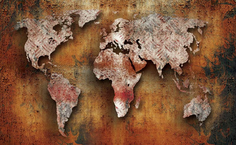 Fototapete der Weltkarte angezeigt in einem rostigen Look.