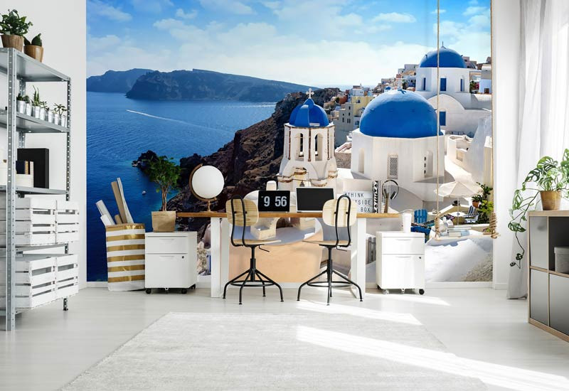 Mit unserer maßgeschneiderten Fototapete können Sie jede Wand in ein malerisches griechisches Panorama verwandeln. Die lebendigen Details und die natürlichen Farben schaffen eine entspannende Atmosphäre, während das strapazierfähige Material dafür sorgt, dass diese schöne Wanddekoration lange Zeit ihre Schönheit behält.