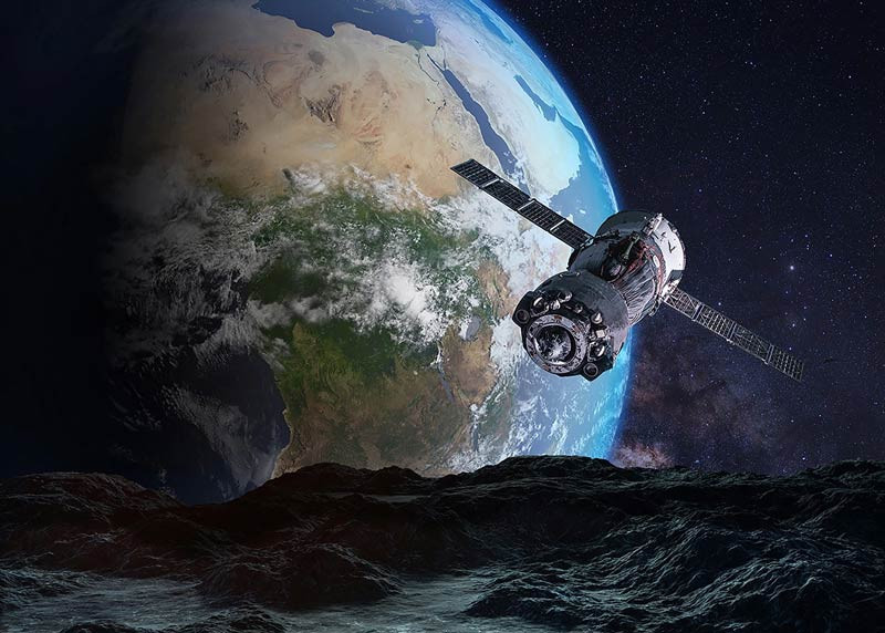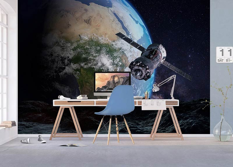 Reisen Sie zu den Sternen mit dieser Fototapete eines Satelliten im Weltraum. Die tiefen Blautöne und das detaillierte Bild des Satelliten sorgen für eine futuristische und geheimnisvolle Atmosphäre.