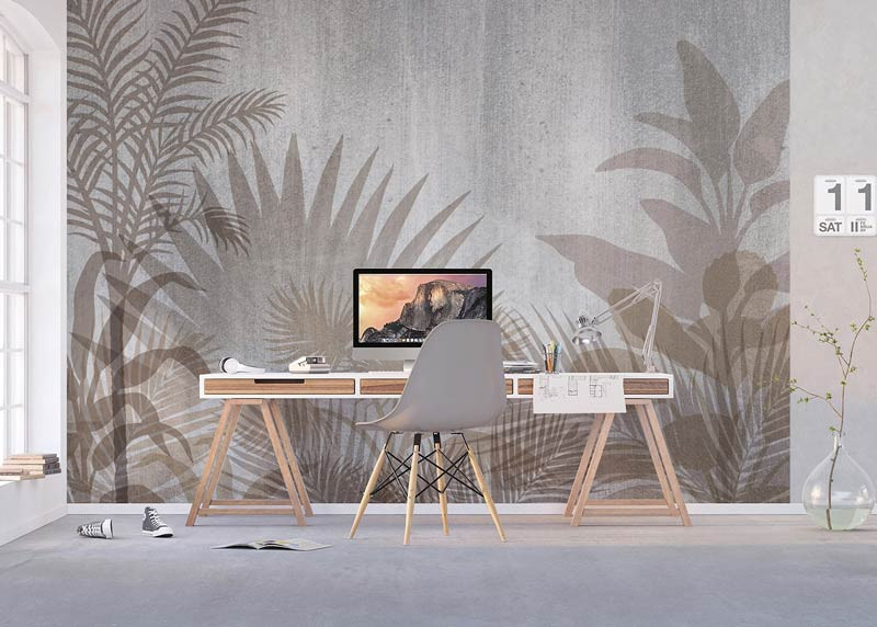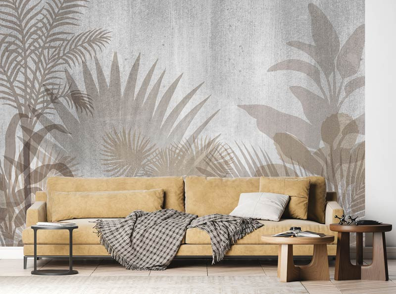 Genießen Sie die ruhige Schönheit von Pflanzenschatten, die auf einen neutralen Hintergrund fallen. Diese Fototapete in sanften Naturtönen verleiht jedem Raum ein subtiles und beruhigendes Element, mit einer detaillierten Wiedergabe jedes Schattendetails.