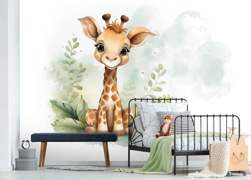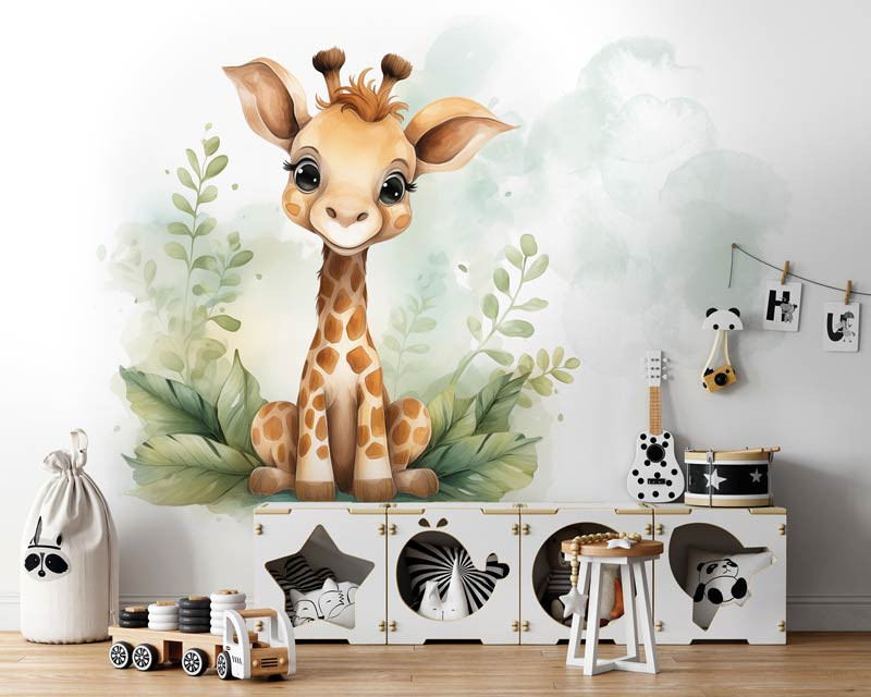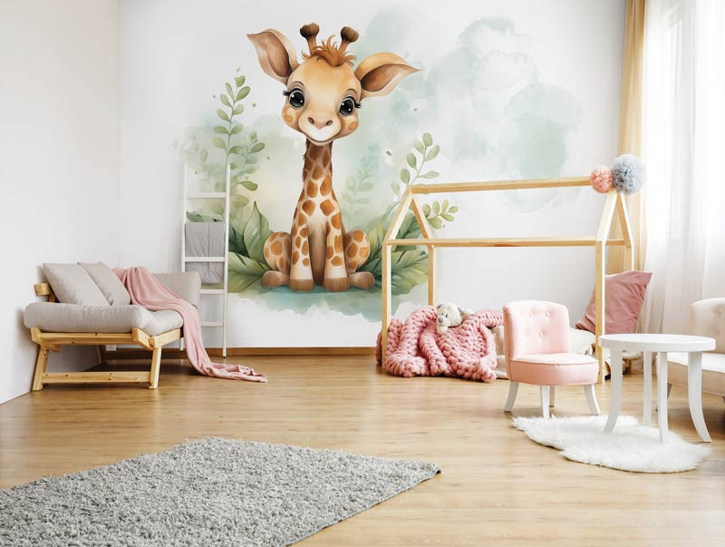 Verleihen Sie dem Zimmer oder Kinderzimmer Ihres Babys einen Hauch von Verspieltheit und Charme mit unserer Fototapete Niedliche Giraffe. Diese Fototapete zeigt eine niedliche Giraffe in einer fröhlichen Umgebung, perfekt, um ein Gefühl von Freude und Abenteuer im Zimmer Ihres Kindes zu schaffen.
