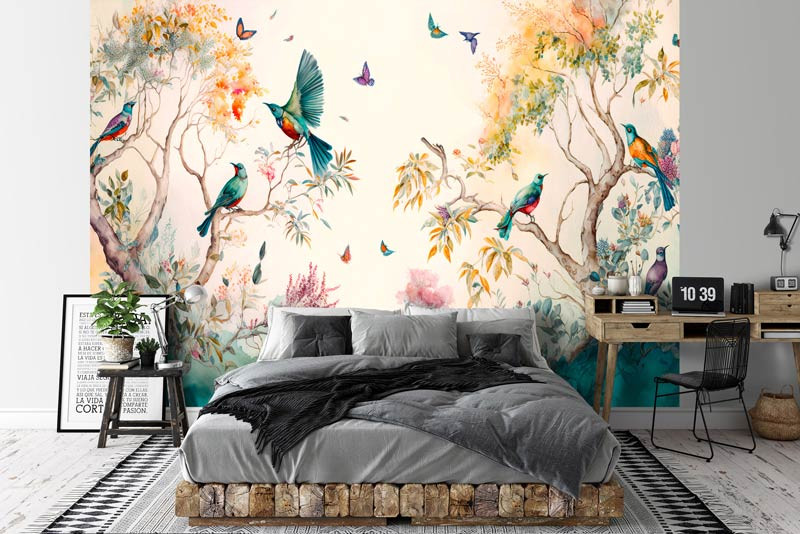 Bringen Sie die natürliche Pracht von Schmetterlingen und Vögeln in Ihr Zuhause mit unserer Fototapete Schmetterlinge und Vögel Aquarell. Diese künstlerische Fototapete wurde in einer lebendigen Aquarelltechnik gemalt und verleiht jedem Raum einen Hauch von Farbe und Eleganz. Sie eignet sich perfekt für Liebhaber natürlicher Schönheit und ist ideal für das Kinderzimmer, das Schlafzimmer oder das Wohnzimmer.
