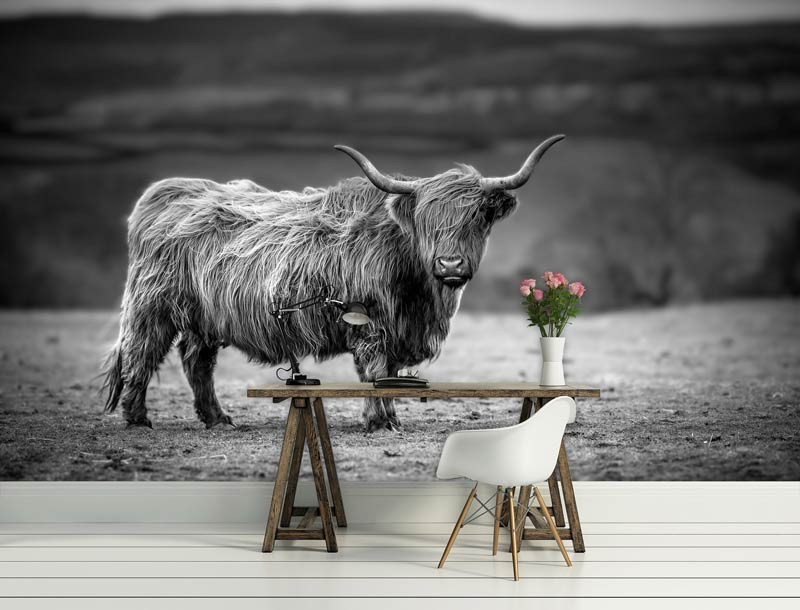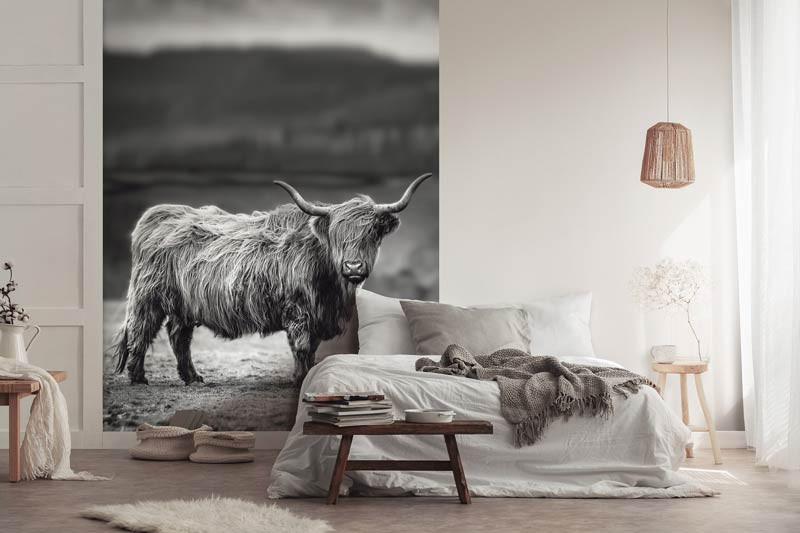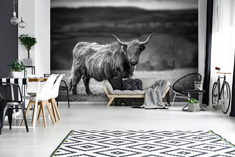 Entdecken Sie dienatürlicheSchönheit der schottischen Highlander mitunsereratemberaubendenschwarz-weißFototapete. Die Fototapete zeigt dieSchönheit derNatur in einergrandiosenWeise.