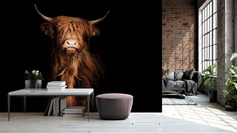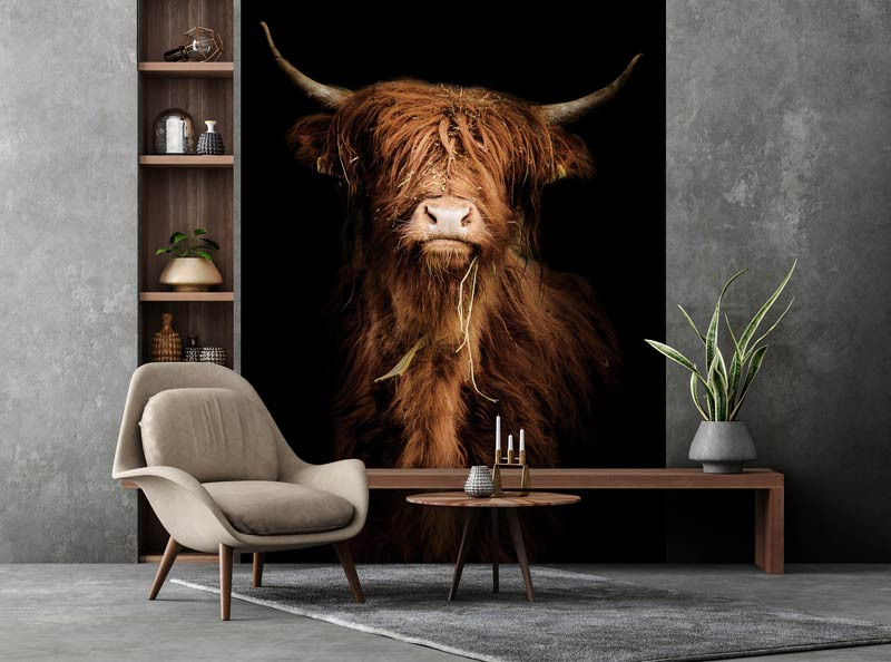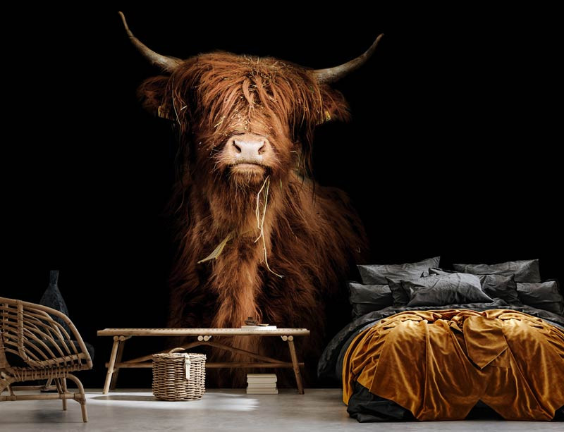 Die Scottish Highlander Fototapete ist ein echter Blickfang und die perfekte Ergänzung für jeden Raum.