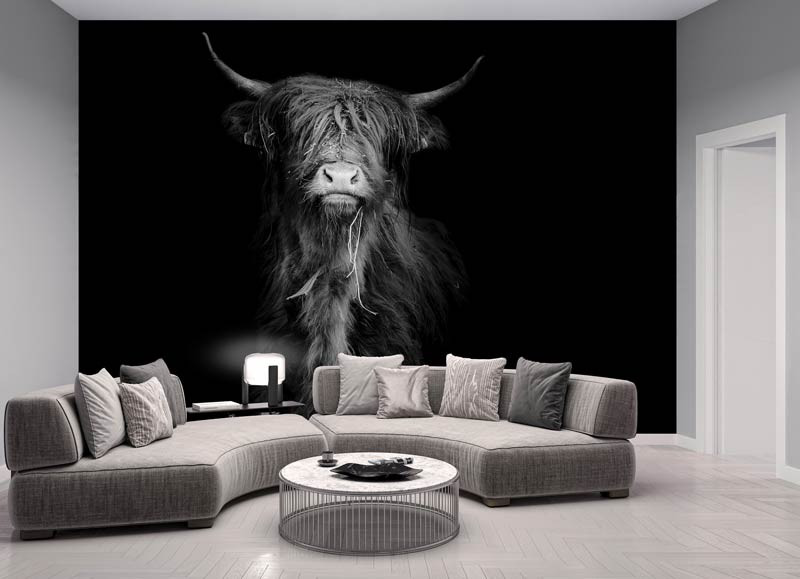 Die Scottish Highlander Fototapete ist ein echter Blickfang und die perfekte Ergänzung für jeden Raum.