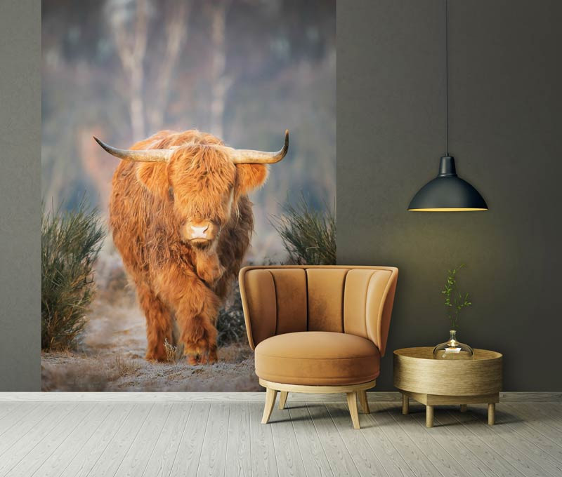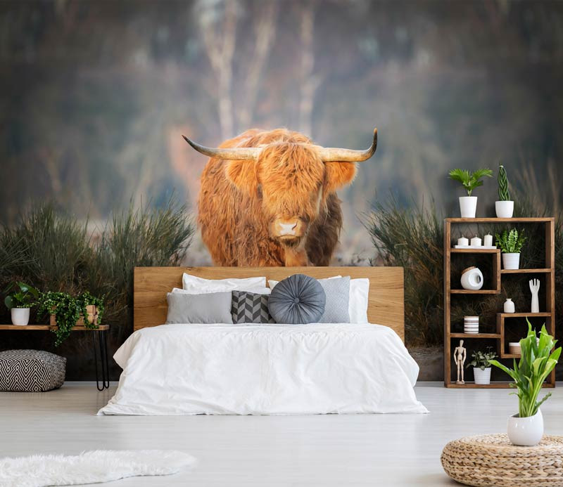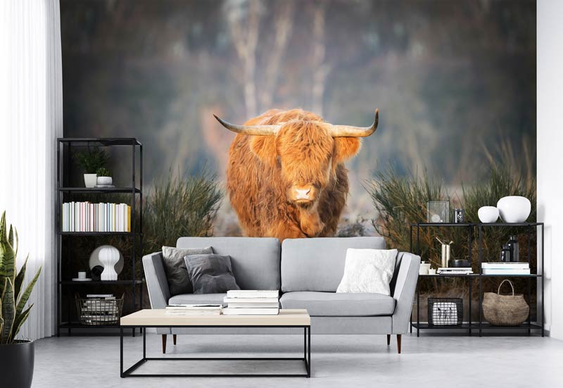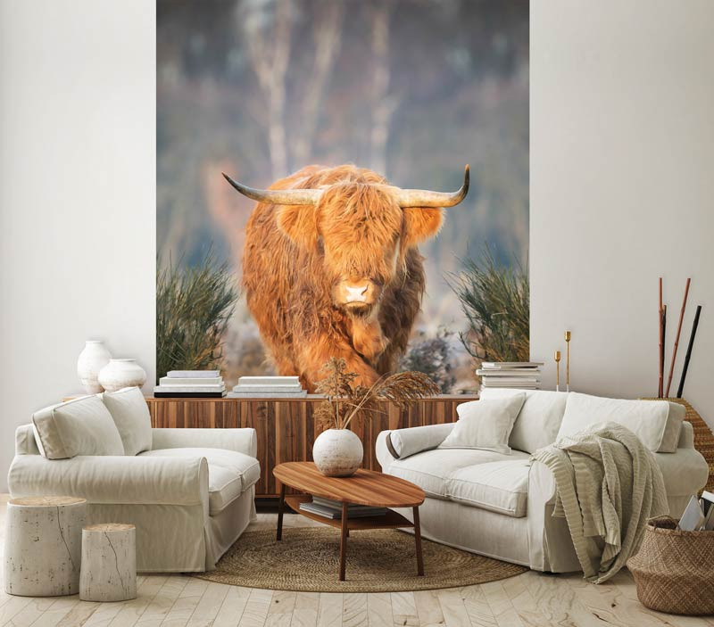 DieFototapeteScottish Highlanderverleiht IhremInterieur mit ihrenschönenFarben und dermalerischenAussichteinerustikaleOutdoor-Atmosphäre.Wenn Sie IhreAugenschließen, können SiefastdaswarmeSonnenlicht und dasweicheGrasunter IhrenFüßen spüren.