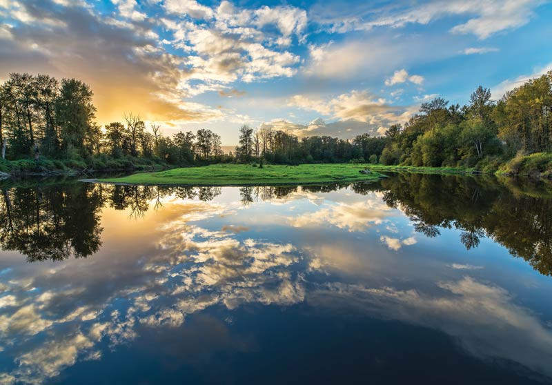 Mit ihrer Spiegelung im Wasser ist die Fototapete See eine einzigartige Ergänzung für jeden Raum.